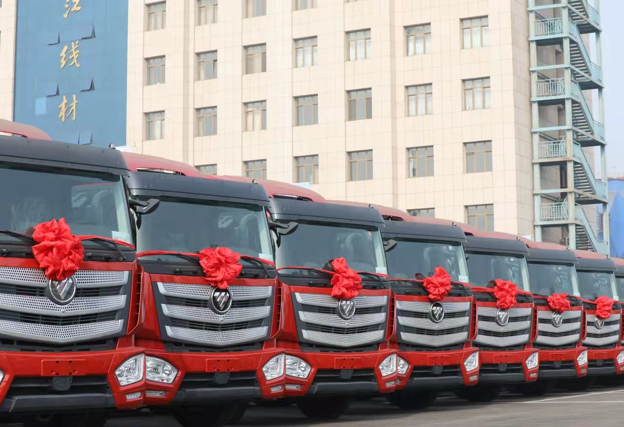 2021年10月25日上午,在溫暖陽光的照耀下,九江線材2號門辦公樓前歡快與喜悅交匯,藍(lán)天白云下,幾十輛披紅戴花的智藍(lán)歐曼重卡車整齊排列,氣勢恢宏?!案L镏撬{(lán)新能源&遷安市九江線材有限責(zé)任公司智藍(lán)歐曼重卡85...